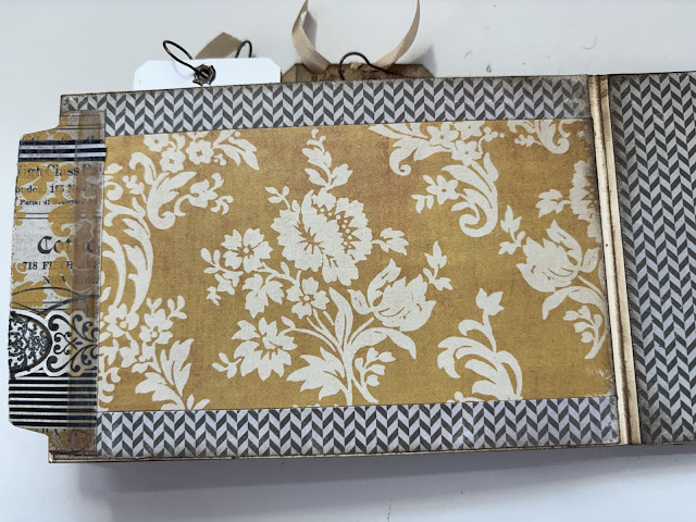 I am in love with this one. I used eleven of the previous elements we made, plus the folio itself, for today's project. Cover includes one of the photos we distressed on Day 13.